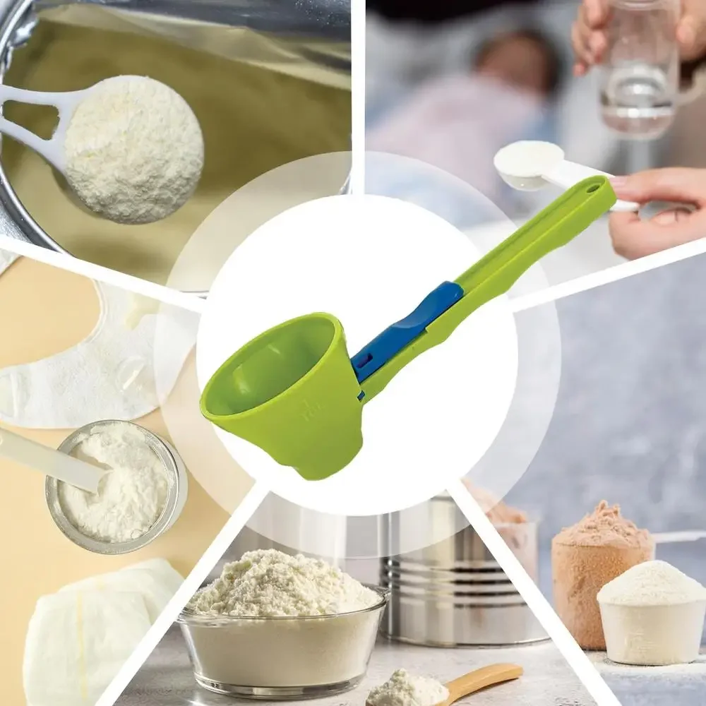 1.Multiple Uses: From the kitchen to the gym, our Measuring Scoop with Funnel saves the day as a practical accessory for preventing spills in making protein shakes, workout drinks, or nutritional supplements.